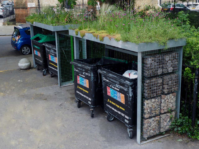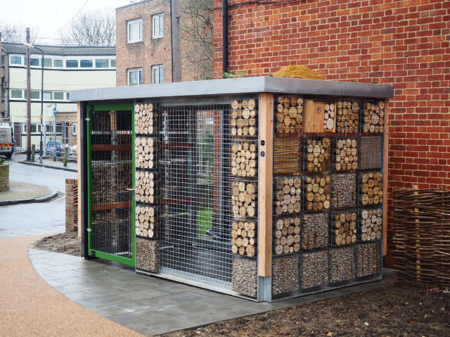 We make shelters for cycle parking, bin stores, bird hides and other storage needs, all with deep, biodiverse roofs and integral wildlife habitats